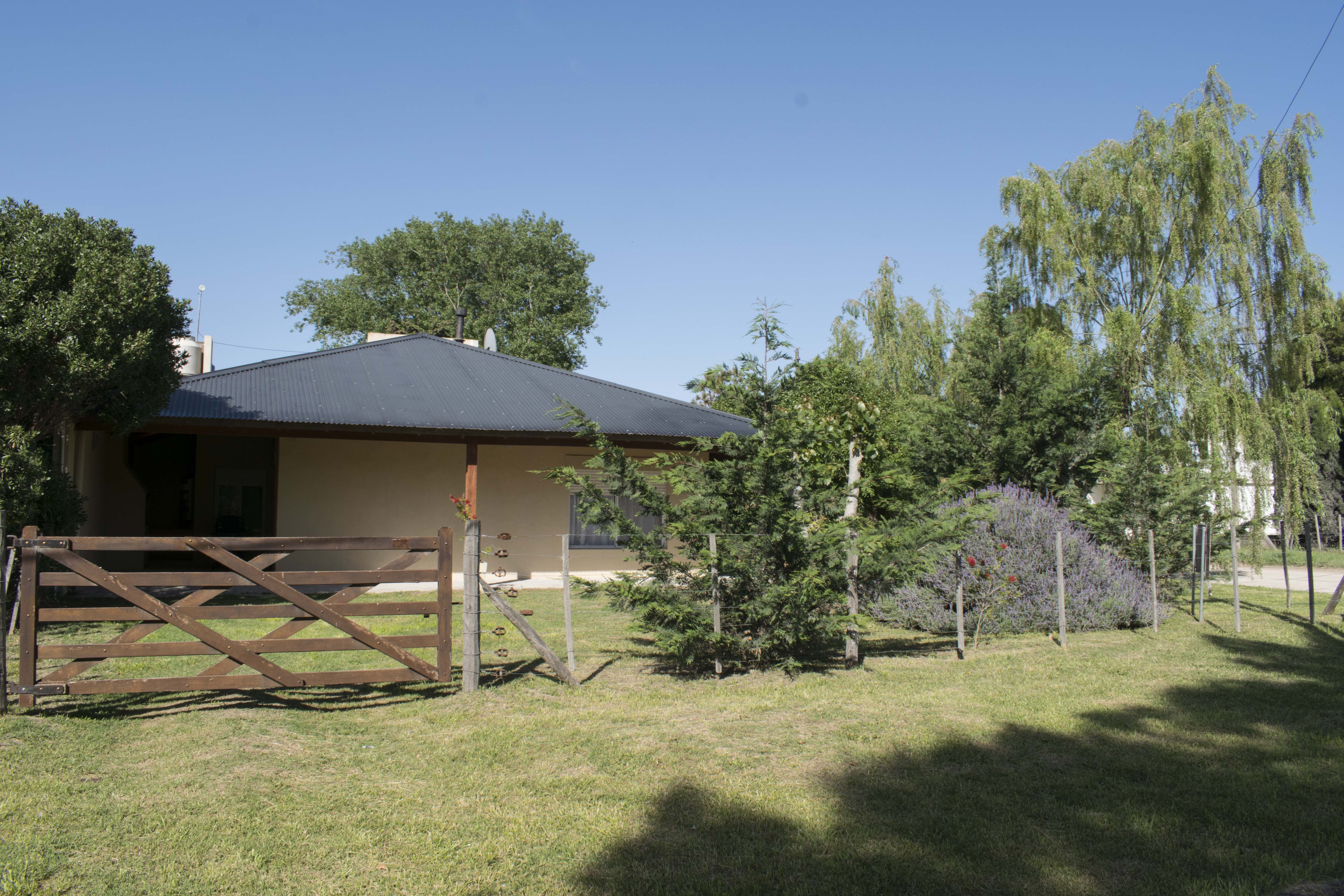El dormitorio principal posee aire acondicionado. Los otros ambientes ventiladores de techo. En la sala de estar hay una estufa a leña Mucho espacio verde para descanso.